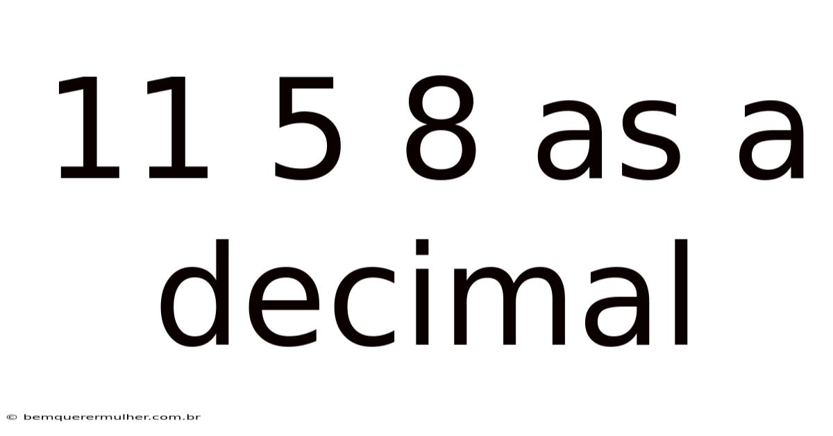11 5/8 as a decimal is a straightforward conversion that many students encounter when they first explore the relationship between fractions and decimal numbers. This article walks you through the entire process, from the basic definition of a mixed number to practical tips for avoiding common errors. By the end, you will not only know how to turn 11 5/8 into its decimal form, but you will also understand why the method works and how to apply it to any similar problem Not complicated — just consistent..