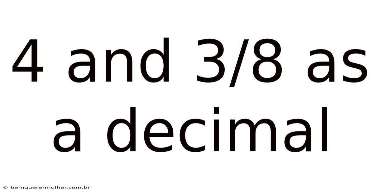 4 and 3/8 as a decimal is 4.375. This is obtained by converting the fraction 3/8 to its decimal equivalent (0.375) and adding it to the whole number 4 Simple, but easy to overlook. But it adds up..