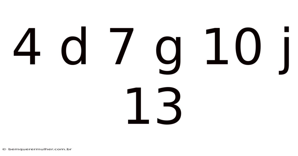 The string “4 d 7 g 10 j 13” is far more than a random assortment of symbols; it is a compact illustration of an arithmetic progression combined with modular alphabetic mapping. By recognizing that each number increments by three and each following letter reflects the numeric value’s position in the alphabet, we tap into a versatile tool for teaching mathematics, coding, and logical reasoning No workaround needed..