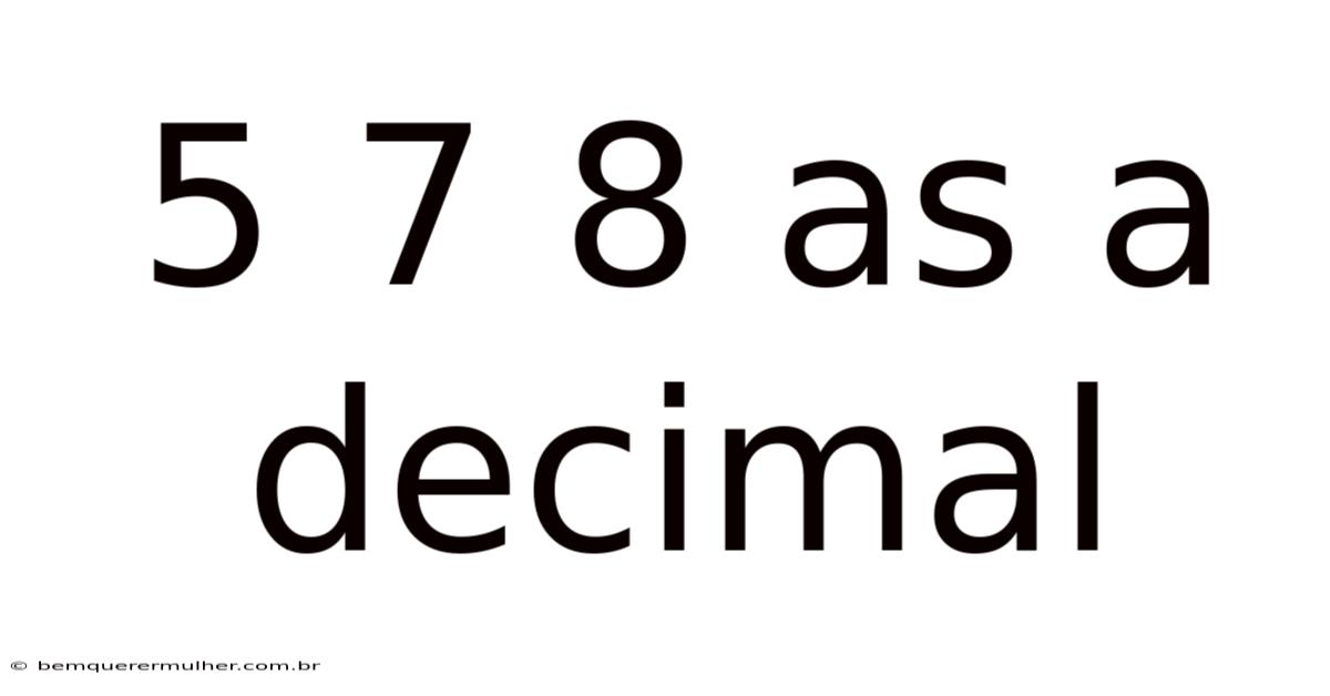 The sequence "5 7 8" in a mathematical context typically implies a mixed number, which is a whole number combined with a proper fraction. Here, it means 5 (the whole number) and 7/8 (the fractional part). Our goal is to express this value as a single decimal number. This conversion is not just an academic exercise; it’s a practical tool. Whether you’re adjusting a recipe that calls for 5 7/8 cups of flour, measuring a piece of wood that is 5 7/8 inches long, or calculating a financial figure, the decimal equivalent (5.875) is often more convenient for computation and comparison on standard calculators or digital displays.