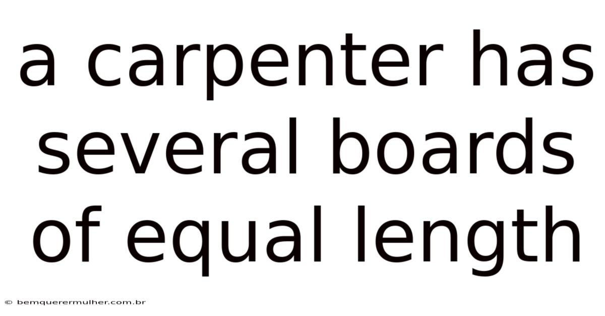 A carpenter works with precision, relying on well-measured materials to ensure every project turns out flawless. One essential aspect of this craft is understanding the importance of boards of equal length. When a carpenter has several boards of equal length, it sets the foundation for accuracy, efficiency, and quality in their work. That's why this topic is crucial for anyone interested in carpentry, whether you're a beginner or an experienced professional. Let’s explore why having boards of equal length matters and how it impacts your craft Not complicated — just consistent..