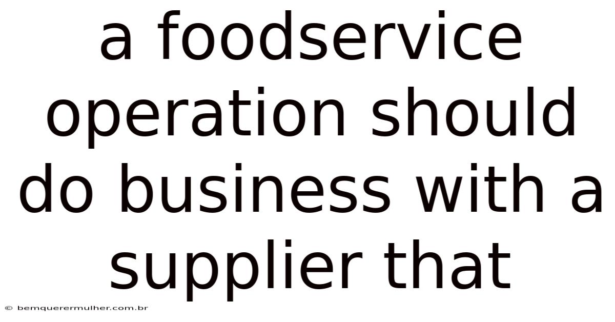Why a Foodservice Operation Should Partner with the Right Supplier