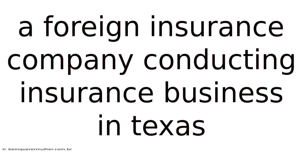 Foreign Insurance Company Conducting Insurance Business in Texas: A practical guide
