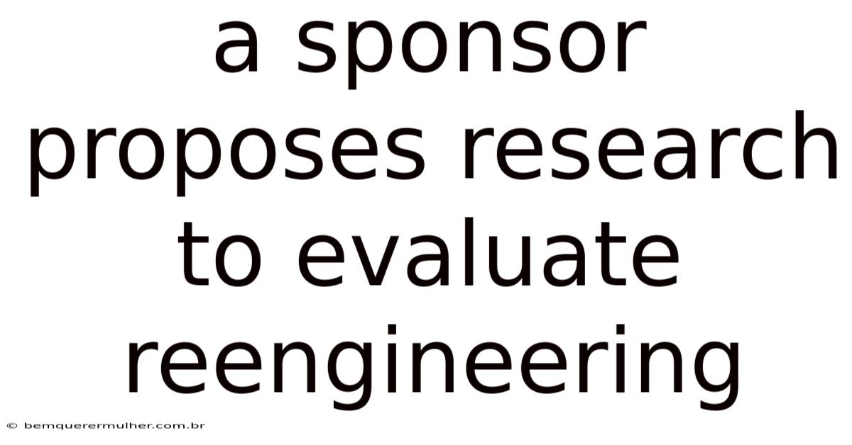 A Sponsor Proposes Research to Evaluate Reengineering: A Strategic Move for Innovation