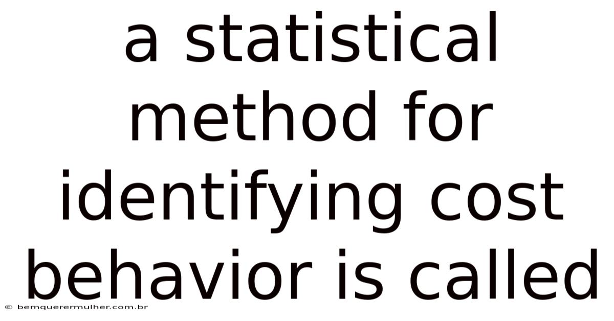 The Statistical Method for Identifying Cost Behavior Is Called Regression Analysis