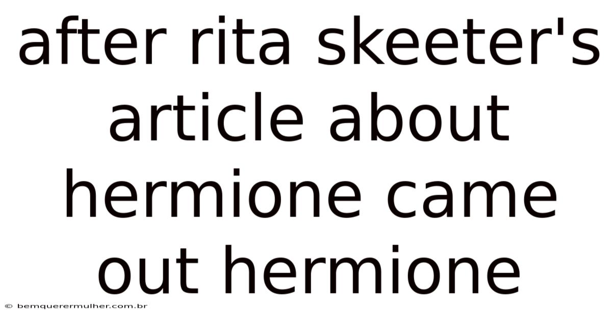The Aftermath of Rita Skeeter's Article: How Hermione Granger Navigated Public Scrutiny and Character Assassination