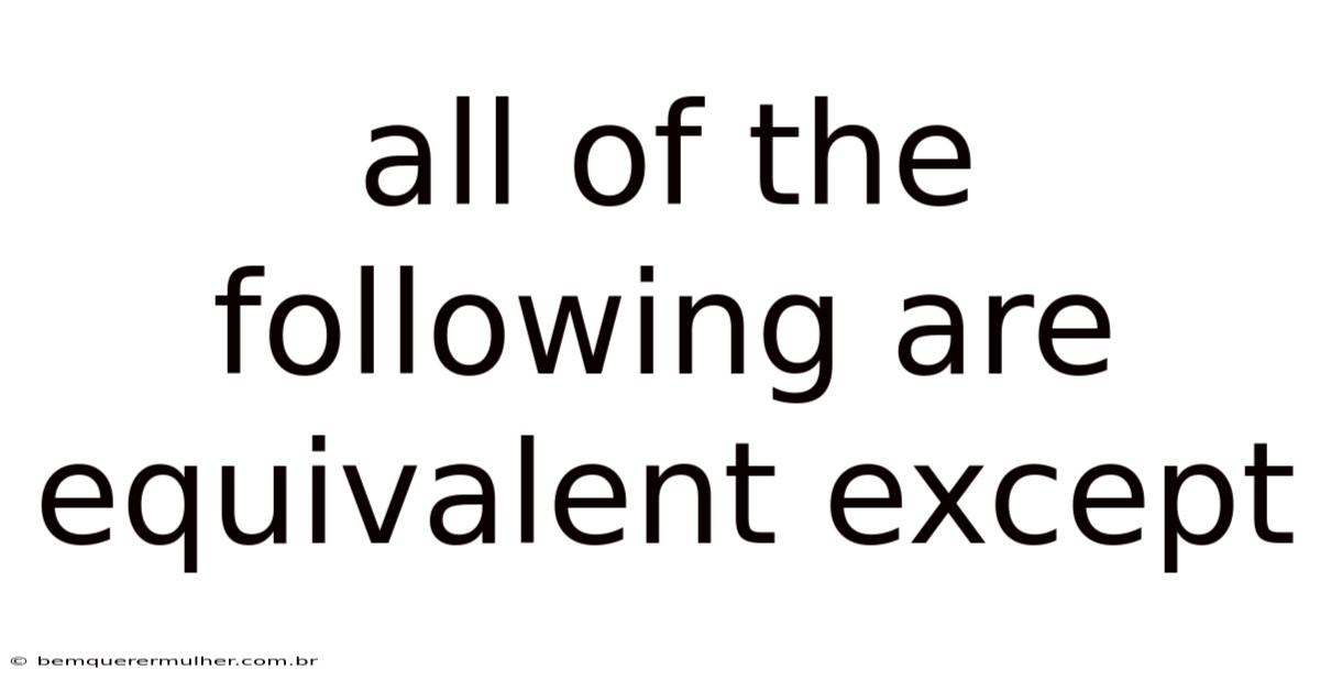 When students encounter the phrase “all of the following are equivalent except” in a textbook or exam, they often feel a mix of curiosity and anxiety. The statement is a prompt to identify the one expression that does not share the same truth value or structural relationship with the others. Day to day, understanding why this happens requires a dive into logic, set theory, and the nature of equivalence in mathematics. This article will unpack the concept, present common examples, provide step‑by‑step reasoning, and answer frequently asked questions so that you can confidently tackle such problems in any academic setting.