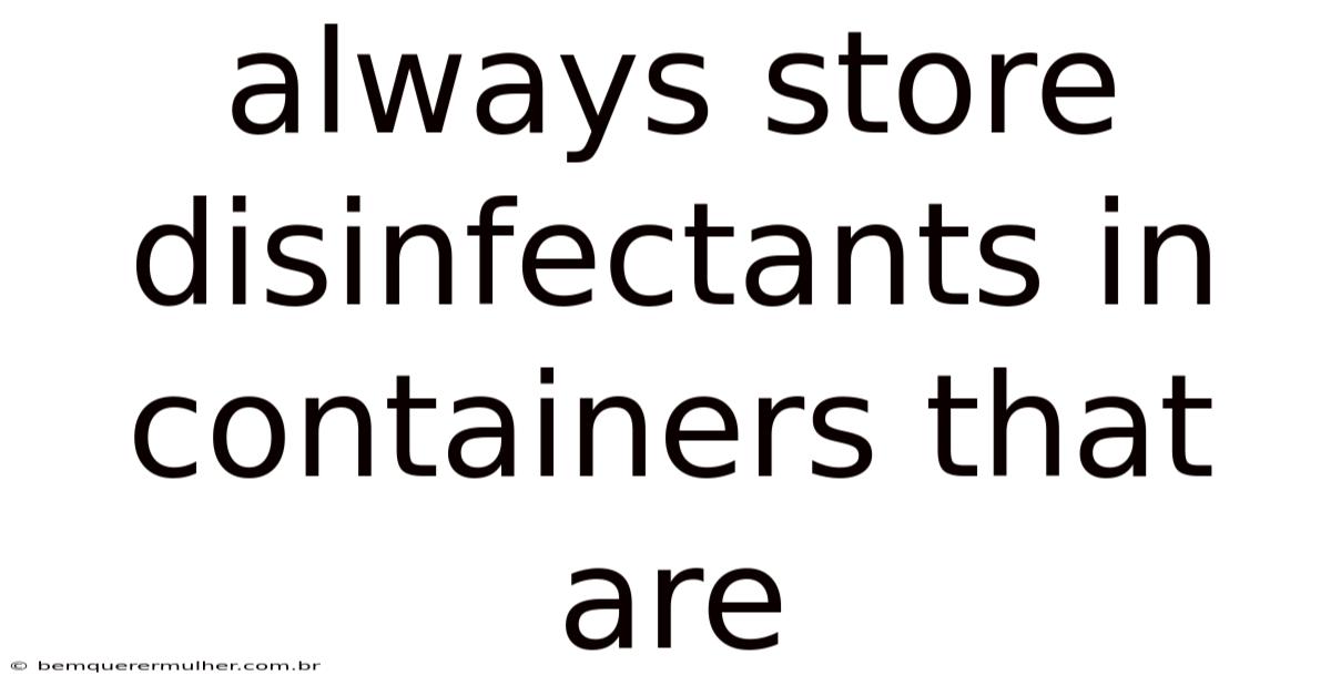 Always store disinfectants in containers that are purpose-built for chemical resistance, securely sealed, and clearly labeled. By prioritizing material compatibility, implementing secondary containment, maintaining organized inventory systems, and understanding the science behind chemical stability, you transform routine storage into a proactive risk management strategy. Here's the thing — disinfectants are powerful tools, but their benefits are only fully realized when handled with precision and respect. Day to day, the decisions you make regarding storage directly influence sanitation effectiveness, workplace safety, and regulatory compliance. Adopt these practices consistently, and you’ll maintain a safer, more reliable environment while ensuring every application delivers the protection it was designed to provide And that's really what it comes down to..