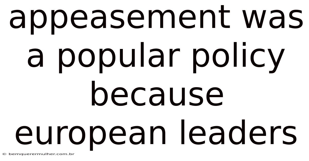 Appeasement was a popular policybecause European leaders sought to avoid another devastating war, to buy time for rearmament, and to respond to widespread public fatigue after the trauma of World War I; this strategy combined diplomatic flexibility with a genuine belief that modest concessions could preserve peace while safeguarding national interests That's the whole idea..