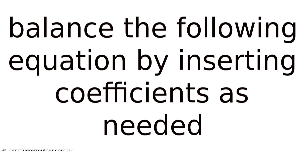 Balancing chemical equations is a corecompetency in chemistry that guarantees the law of conservation of mass is respected; to balance the following equation by inserting coefficients as needed, you must treat each element as a conserved quantity and adjust the numerical multipliers (coefficients) in front of the reactants and products until the atom counts match on both sides of the arrow. This process, while seemingly mechanical, reveals deeper insights into reaction stoichiometry, enables precise predictions of product yields, and forms the foundation for more advanced topics such as limiting reagents and reaction pathways. In this guide we will dissect the methodology step‑by‑step, illustrate it with a concrete example, and answer common questions that arise when learners first encounter equation balancing.