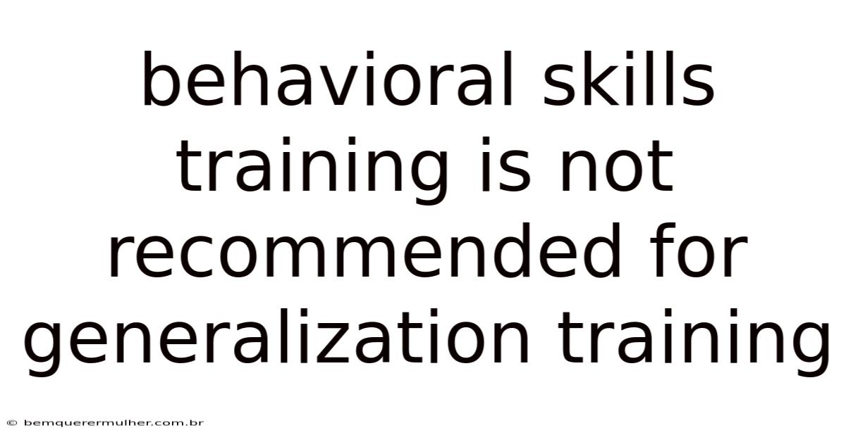 H2 Why Behavioral Skills Training Is Not Recommended for Generalization Training