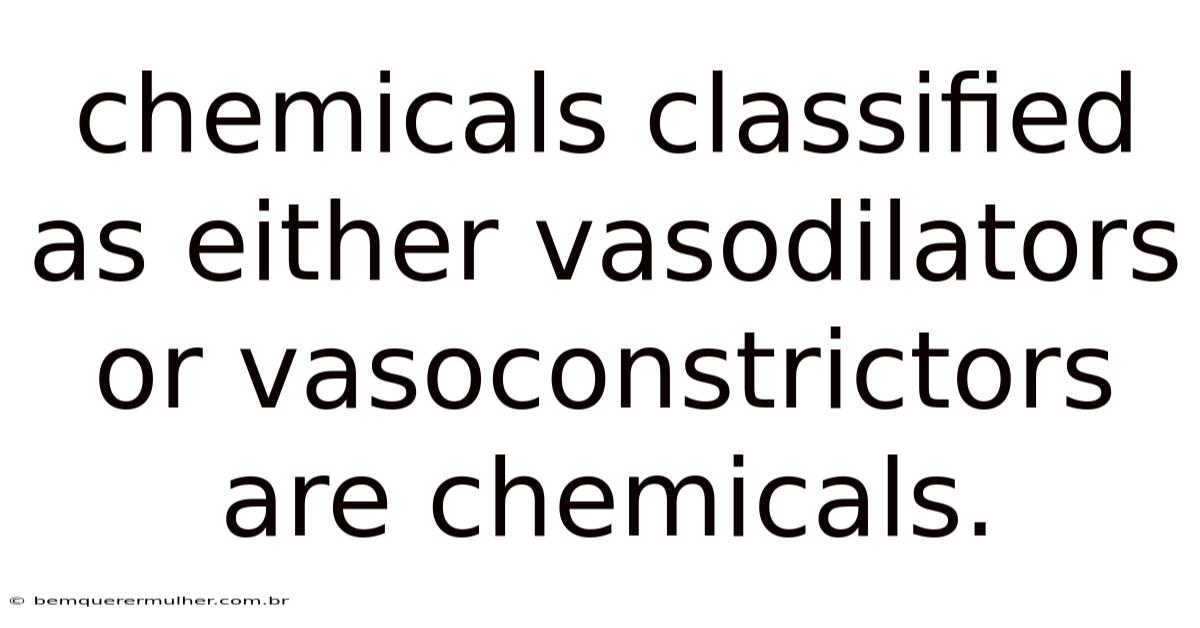 chemicals classified as either vasodilators or vasoconstrictors are chemicals that directly alter the width of blood vessels, a property that underlies their importance in cardiovascular physiology, drug design, and disease treatment. That's why these substances can either relax the muscular walls of arteries and veins, leading to vessel expansion, or cause the vessels to tighten, resulting in narrowing. The balance between these opposing forces determines blood pressure, tissue perfusion, and overall circulatory health, making the study of vasodilators and vasoconstrictors essential for clinicians, researchers, and students alike Which is the point..