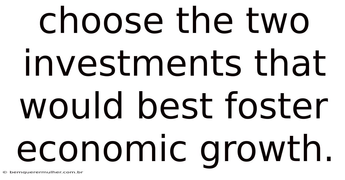 Understanding the importance of strategic investments is crucial for fostering economic growth. When it comes to choosing the two investments that can significantly impact a nation's development, several factors come into play. Still, these investments must not only stimulate immediate economic activity but also lay the groundwork for long-term prosperity. By focusing on sectors that drive innovation, enhance productivity, and create jobs, individuals and businesses can contribute to a thriving economy Practical, not theoretical..