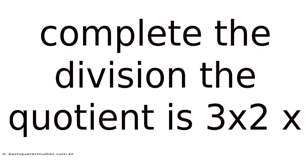 Next, let’s examine the process of completing the quotient. In our case, if we are looking at a division problem involving 3x2 x, we need to identify the divisor and the dividend. The quotient is what we obtain after dividing one number by another. Still, without more context, it’s challenging to pinpoint the exact numbers involved And it works..