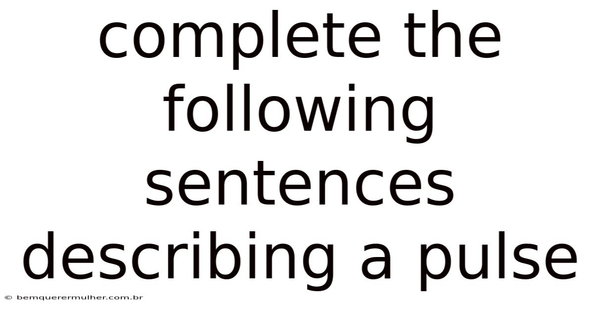 Completing sentences that describe a pulse is more than a clerical exercise; it is a systematic method of translating subtle cardiovascular signals into clear, actionable information. In real terms, by mastering the terminology—regular vs. tachycardic, strong vs. Which means filiform—and understanding the physiological mechanisms behind each descriptor, you can produce precise, SEO‑friendly content that educates and empowers readers. weak*, full vs. On the flip side, irregular, *bradycardic vs. Whether you are a student learning anatomy, a nurse documenting vital signs, or a writer crafting health‑focused articles, the ability to articulate pulse characteristics with confidence enhances both clinical practice and the quality of educational material Easy to understand, harder to ignore..
