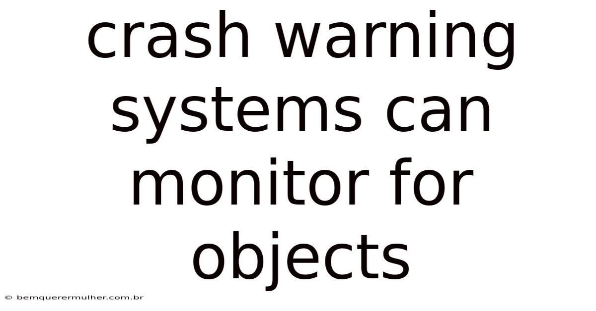 One of the key components of these systems is the ability to monitor various objects in the vicinity. Drivers today are surrounded by a range of potential hazards, from pedestrians crossing the road to parked cars or bicycles. Worth adding: crash warning systems are designed to detect these objects with precision, ensuring that drivers are always aware of their environment. To give you an idea, forward collision warning systems use radar or cameras to spot vehicles ahead, while blind spot detection systems monitor areas that are not directly visible through the vehicle’s mirrors It's one of those things that adds up. Turns out it matters..