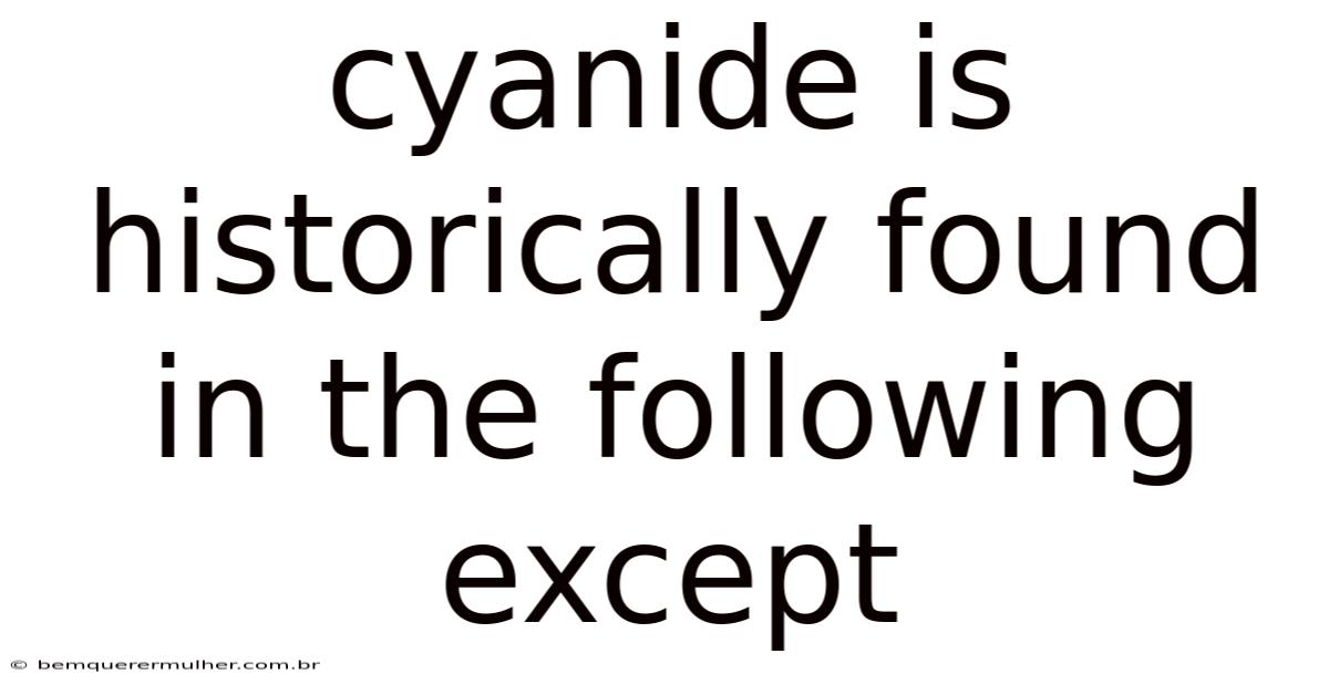 Cyanide is a highly toxic compound that has been historically associated with various natural sources, often linked to plants, fungi, and environmental phenomena. While it is most commonly recognized for its role in industrial processes and its deadly reputation, cyanide also occurs naturally in certain organisms and geological formations. Understanding where cyanide has been historically found helps contextualize its presence in the natural world and highlights the importance of managing exposure to this dangerous substance. On the flip side, not all historical sources of cyanide are as well-known or as directly linked to human history as others. This article explores the historical presence of cyanide in nature, focusing on the places and organisms where it has been historically identified, while also addressing the exception that does not fit this pattern But it adds up..