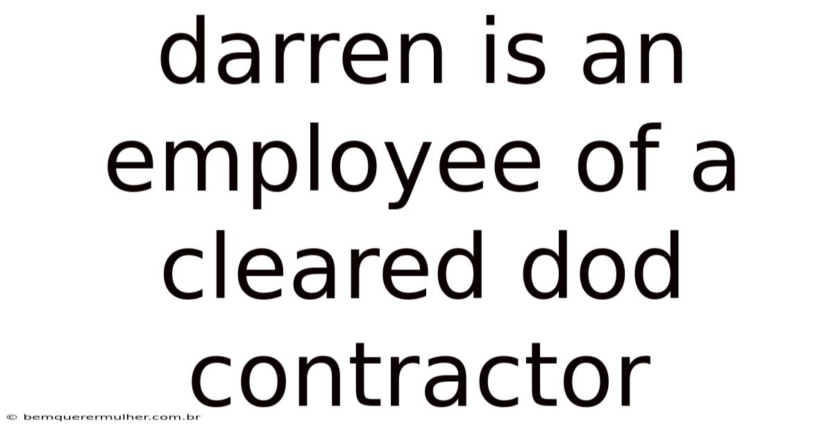 Darren is an employee of a cleared Department of Defense (DoD) contractor, a position that places him at the intersection of national security and private sector innovation. His work involves handling sensitive information, developing advanced technologies, and supporting critical military operations—all while navigating the complex world of government contracts and security protocols. This unique career path demands exceptional skills, unwavering integrity, and a deep commitment to protecting national interests That alone is useful..