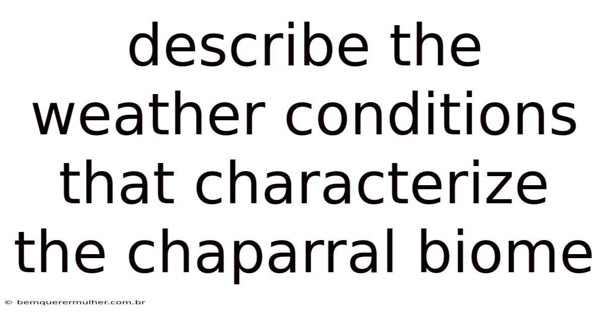 The weather conditions that characterizethe chaparral biome are defined by dry summers and wet winters, creating a unique ecosystem that thrives in specific regions. Because of that, this article explores the key climate patterns, seasonal variations, and scientific factors that define the chaparral biome’s weather. In real terms, understanding these conditions is essential to grasp how flora, fauna, and human activities interact within this distinct environment. The chaparral biome, often associated with regions like California, the Mediterranean, and parts of Australia, is shaped by its climatic extremes, which influence everything from plant survival to wildlife behavior Simple, but easy to overlook. Which is the point..