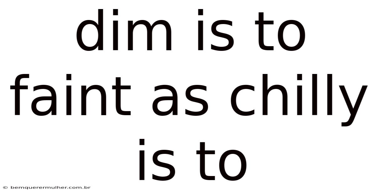 Dim is to faint as chilly is to cold. This analogy highlights the relationship between degrees of intensity in sensory perception—light and temperature. Just as "dim" describes a low level of brightness and "faint" refers to barely perceptible light, "chilly" describes a mild degree of cold, while "cold" indicates a more intense sensation.
