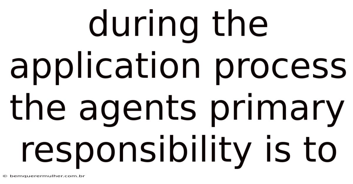 During the Application Process, the Agent’s Primary Responsibility Is to Ensure Seamless and Accurate Execution