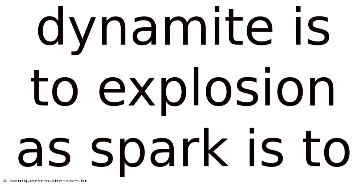 The analogy "Dynamite is to explosion as spark is to fire" is a surprisingly insightful comparison. From the scientific realm of chemical reactions to the metaphorical landscape of human influence, this simple pairing reveals a profound truth: small, deliberate actions can have monumental consequences, transforming potential into reality with remarkable force. Because of that, it elegantly illustrates the fundamental principles of cause and effect, the role of catalysts, and the power of tools and triggers. It serves as a reminder to consider the ripple effect of our actions and the potential they hold to ignite significant change, whether it's a controlled demolition or a blazing new idea The details matter here. But it adds up..