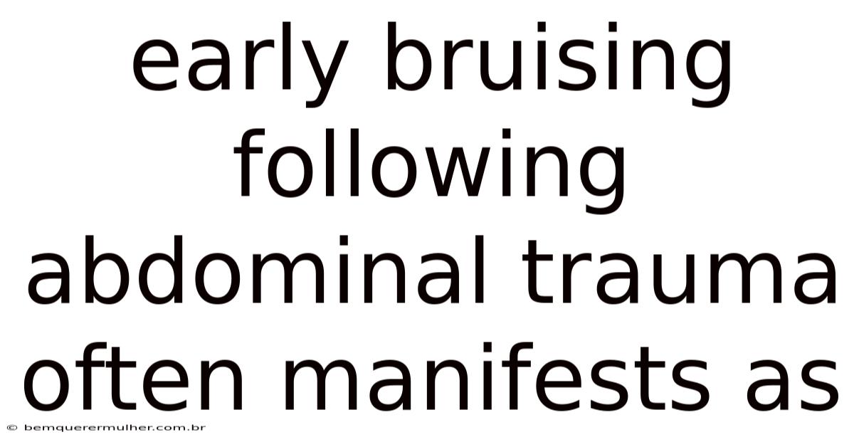 Conclusion Early bruising following abdominal trauma is far more than a superficial mark; it is a vital clinical sign that demands immediate attention and careful interpretation. Its presence, particularly when accompanied by pain, specific patterns, or other signs of injury, serves as an early warning system for potentially life-threatening conditions such as internal hemorrhage, organ rupture, or peritoneal contamination. While not every instance signifies a catastrophe, its emergence in the context of trauma necessitates a low threshold for further investigation. Understanding the mechanisms behind its development and recognizing its clinical implications are paramount for healthcare providers. Prompt recognition, systematic evaluation, and timely intervention, guided significantly by the presence and nature of early bruising, are fundamental to improving outcomes for patients suffering from abdominal trauma. Vigilance regarding this seemingly subtle sign can be the difference between a successful recovery and devastating complications.