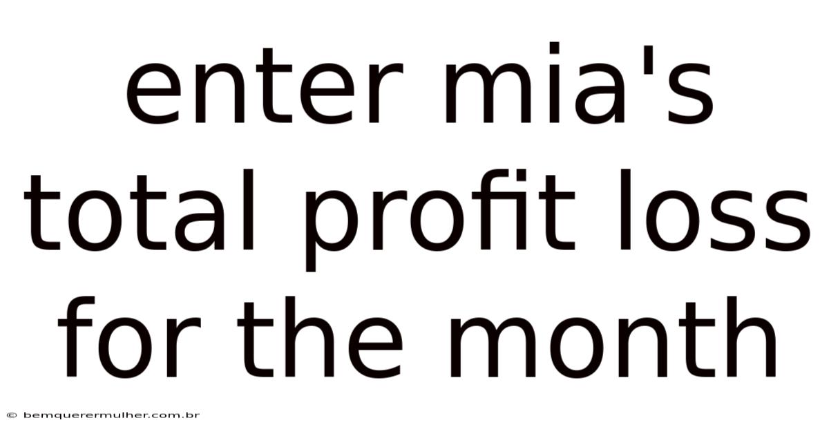 Enter Mia'sTotal Profit Loss for the Month: A practical guide to Financial Clarity