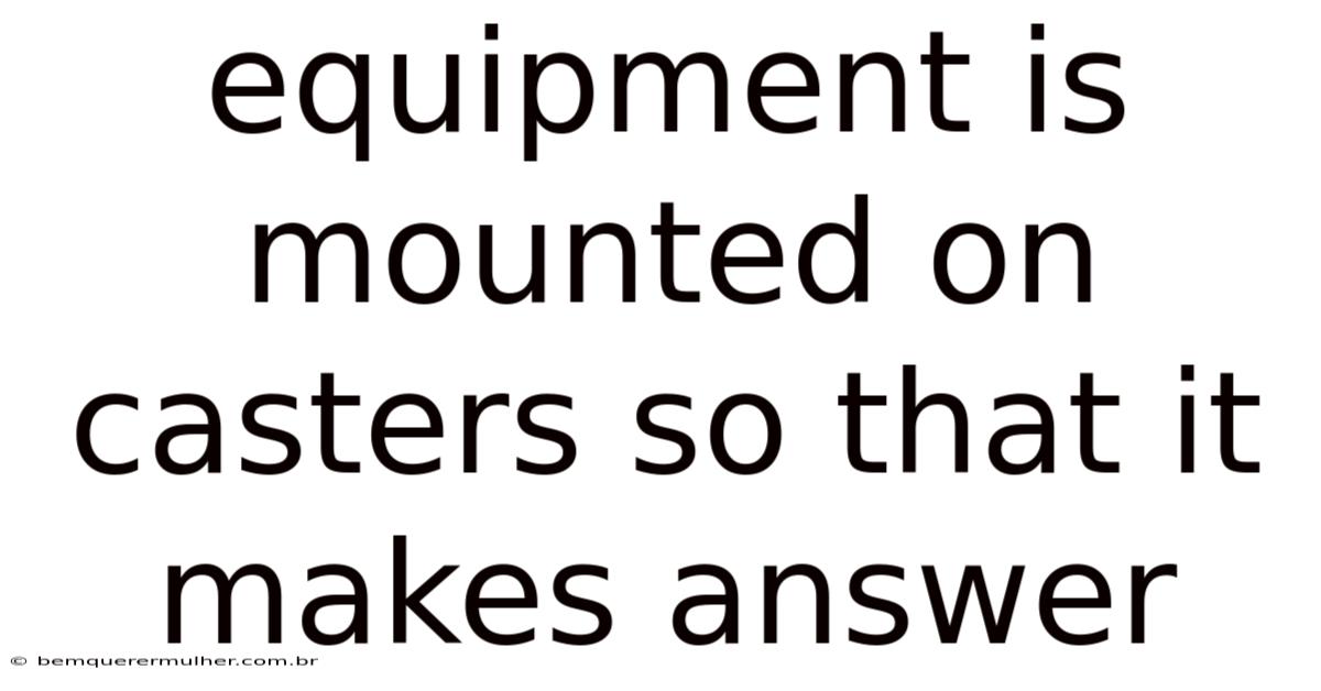 When you see a heavy workstation, a medical cart, or a industrial rack gliding smoothly across a polished floor, the secret behind that effortless motion is often a set of small, sturdy wheels known as casters. Which means Equipment is mounted on casters so that it makes relocation, reconfiguration, and everyday operation far more efficient, safer, and cost‑effective. This article explores the mechanics, advantages, and practical applications of caster‑mounted equipment, offering a thorough look for facility managers, engineers, and anyone curious about the technology that keeps modern workplaces moving It's one of those things that adds up..