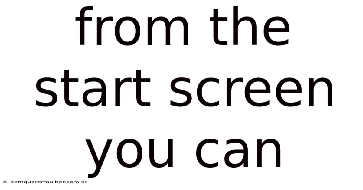 From the Start Screen You Can: Mastering the Gateway to Your Digital Workspace