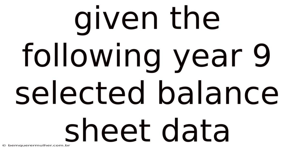 When examining Year 9 selected balance sheet data, students should recognize common categories:
