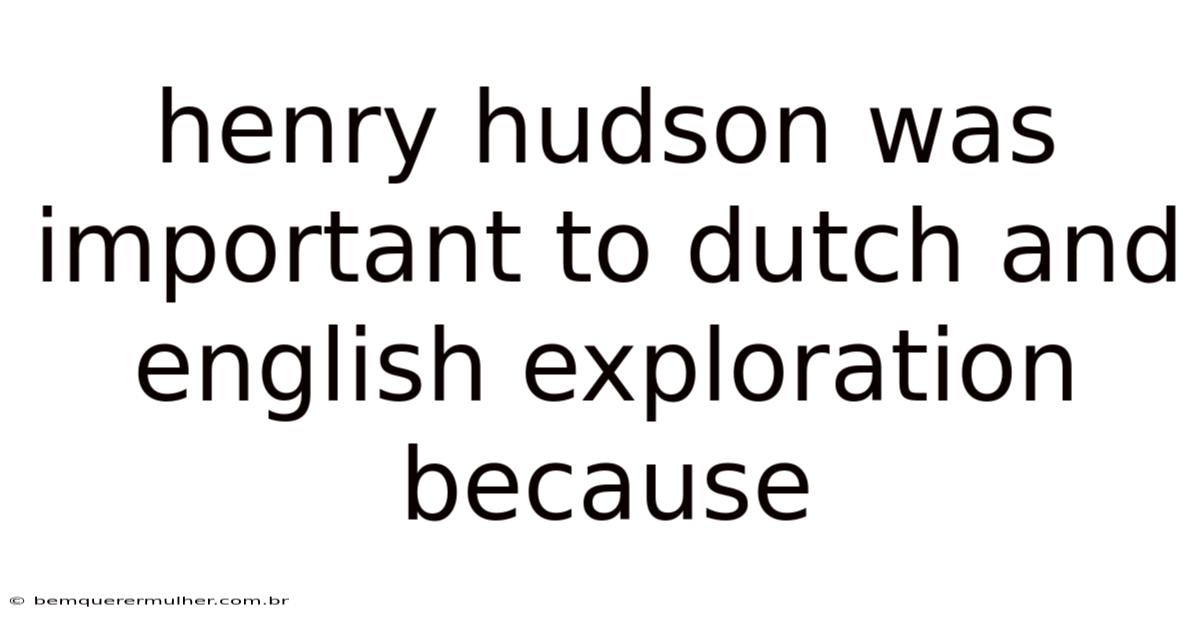 Henry Hudson Was Important to Dutch and English Exploration Because His Voyages Opened Critical Trade Routes and Colonial Opportunities