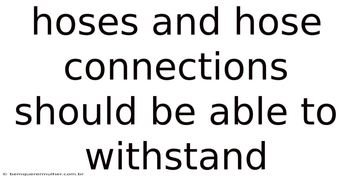The phrase “hoses and hose connections should be able to withstand” encapsulates a fundamental truth about fluid-handling systems. Whether used in firefighting, oil and gas operations, or household plumbing, hoses are subjected to forces that can degrade their integrity over time. A hose failure—such as a burst or leak—can lead to catastrophic consequences, including equipment damage, environmental hazards, or even loss of life. In practice, for example, in industrial settings, a ruptured hose carrying corrosive chemicals could result in severe burns or contamination. Similarly, in automotive applications, a failing hose connection might cause coolant leaks, leading to engine overheating The details matter here..