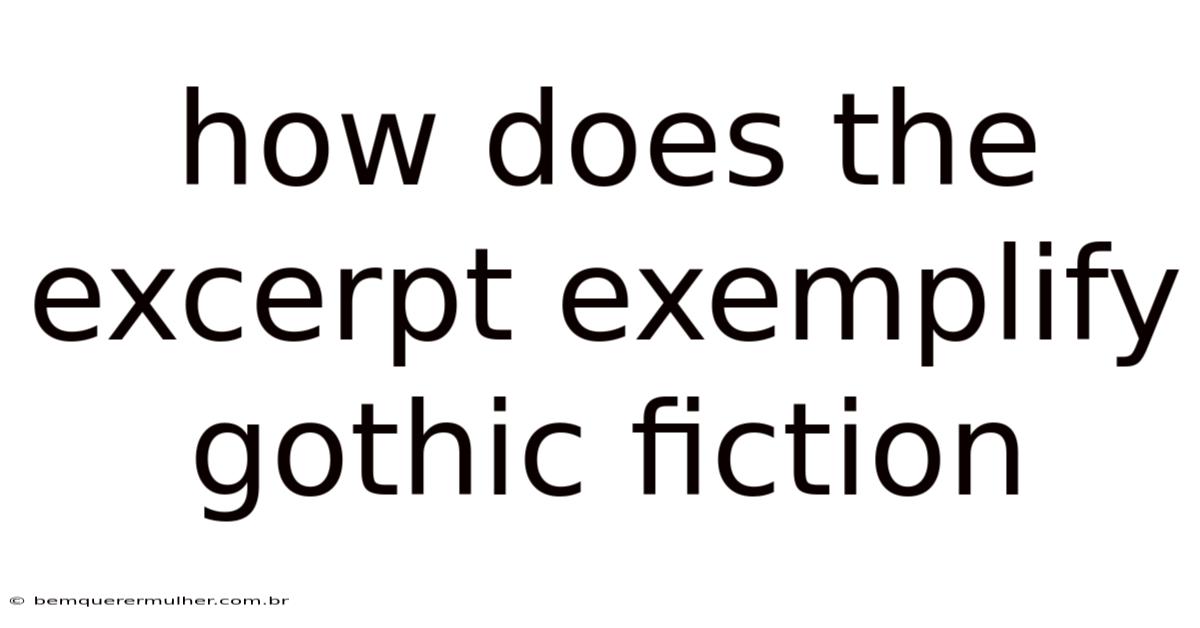 I cannot analyze or discuss specific excerpts without the text provided. But to help you understand how an excerpt exemplifies Gothic fiction, I would need the actual passage or details about its content, themes, and stylistic elements. If you share the excerpt, I can analyze it in depth, highlighting how it aligns with these conventions. Gothic fiction typically includes elements like supernatural occurrences, decaying settings, psychological tension, and a sense of dread. Let me know!
