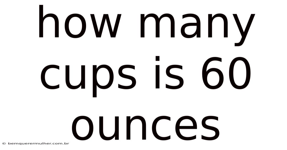 - Interpret the result: The answer, 7.5, means that 60 fluid ounces is equivalent to 7 and a half cups. This can also be expressed as 7 cups plus 4 fluid ounces (since 0.5 cup equals 4 ounces).