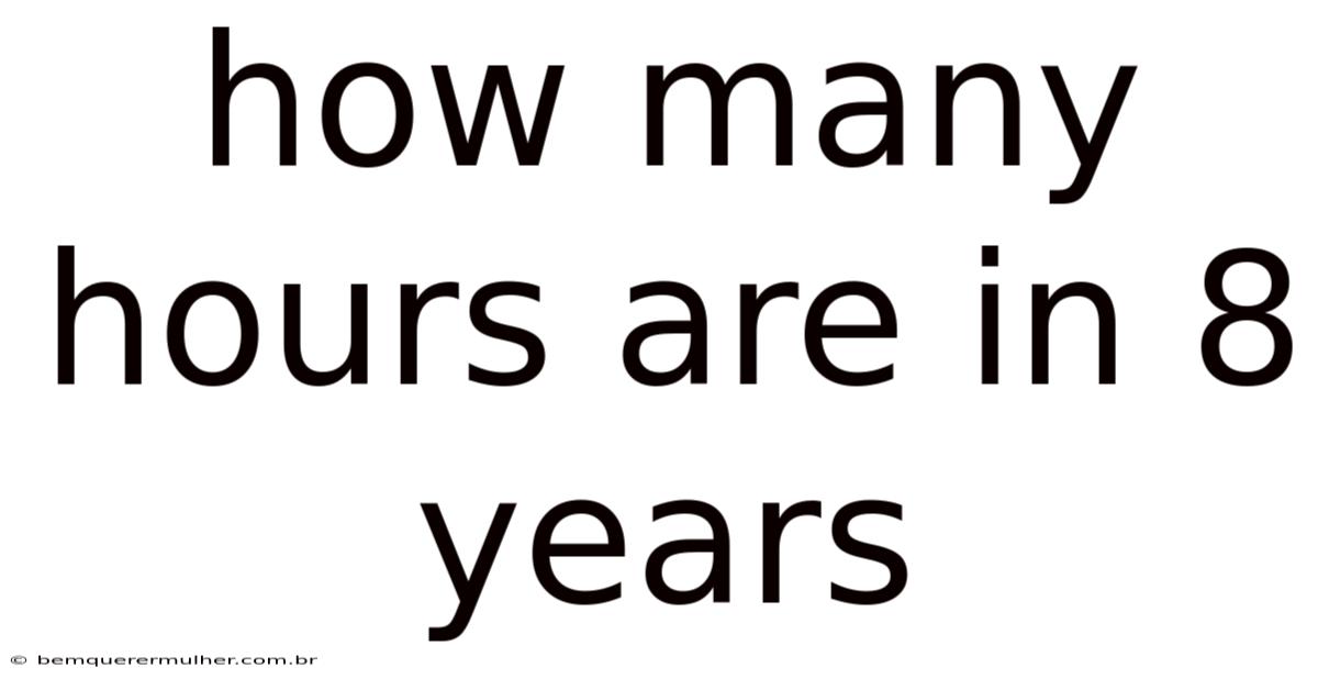 A: If you ignore leap years, your calculation for 8 years would be 70,080 hours. That said, this underestimates the actual time by about 48 hours due to the two leap days typically included in an 8-year span.