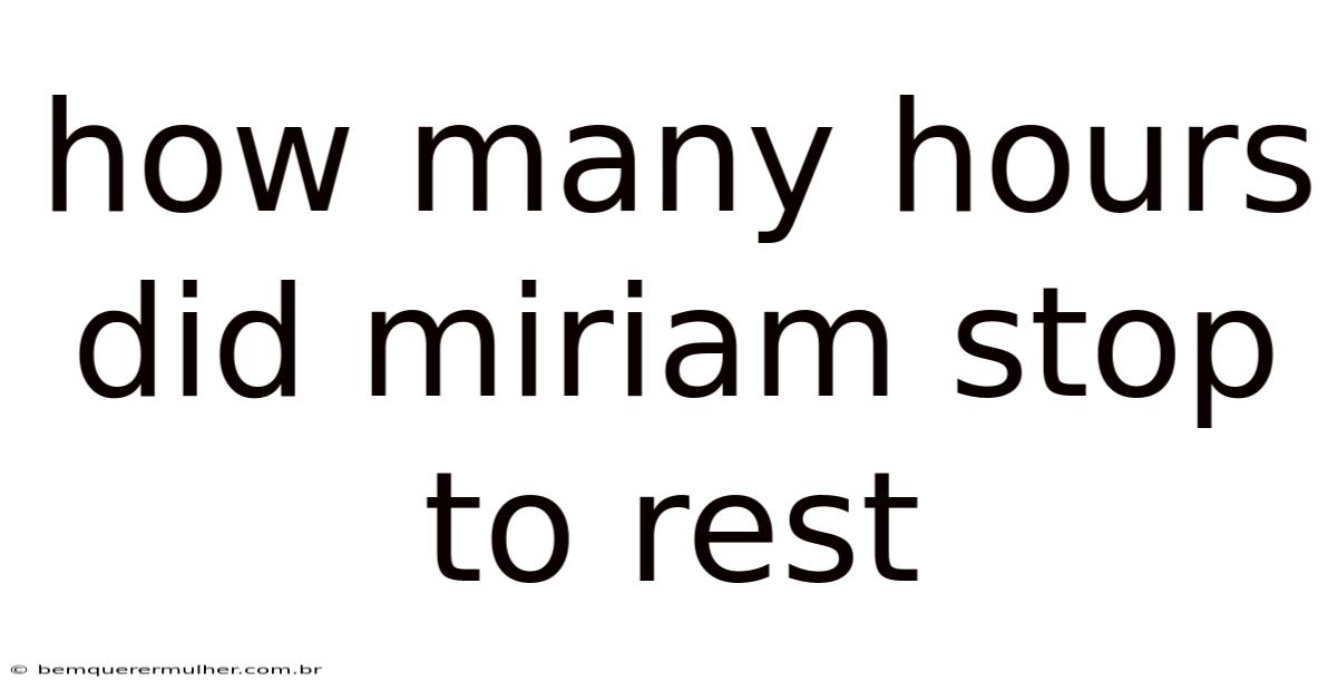 Miriam's journey is one that many can relate to, whether it's a long road trip, a challenging hike, or a significant life transition. The question of how many hours Miriam stopped to rest is not just about counting time; it's about understanding the importance of rest in any journey. In this article, we'll explore the significance of rest, how to determine the right amount, and what factors influence Miriam's rest stops That's the part that actually makes a difference. Simple as that..