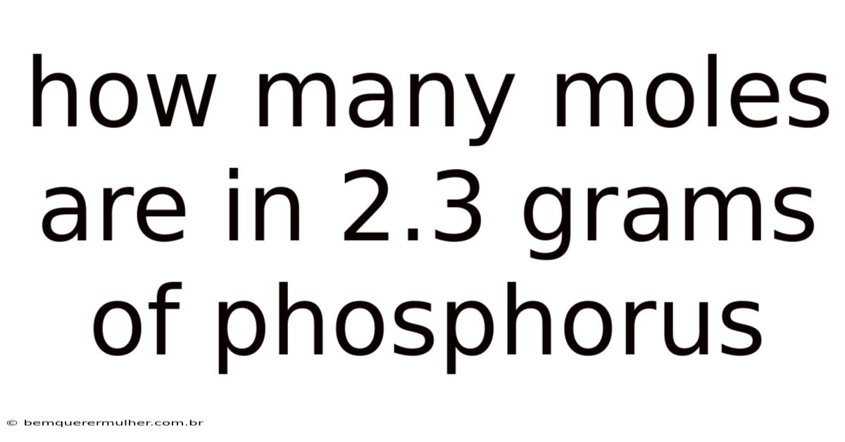 Now, let’s consider the implications of this number. Because of that, if you have 2. 3 grams of phosphorus, you can use this information to predict how it will behave in different chemical environments. Here's a good example: phosphorus is known for its role in forming various compounds, and knowing its molar quantity helps in designing experiments or understanding its reactivity Small thing, real impact..