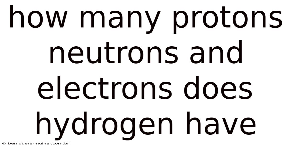 The question of how many protons neutrons and electrons does hydrogen have reveals a perfect blend of simplicity and scientific depth. Think about it: at its core, hydrogen always contains one proton and one electron, while the neutron count varies from zero to two across its isotopes. Here's the thing — this subtle variation shapes everything from the chemistry of life to the energy production of stars and the development of next-generation clean technologies. By mastering hydrogen’s atomic composition, you build a stronger foundation for understanding chemical bonding, nuclear processes, and the fundamental laws that govern matter. Whether you are preparing for an exam, exploring physics, or simply nurturing a curiosity about how the universe works, hydrogen remains the ideal starting point for unlocking the secrets of atomic science.