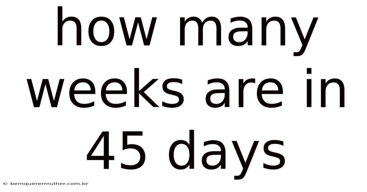 - Decimal Weeks: 45 ÷ 7 ≈ 6.4286 ≈ 6.43 weeks.