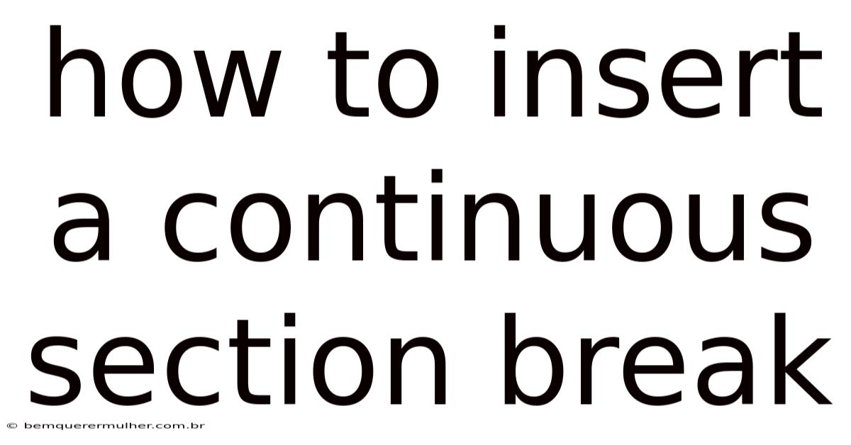 Inserting a continuous section break is one of the most useful yet often overlooked tools in Microsoft Word. It allows you to change formatting—such as columns, headers, footers, or page orientation—within a single page without forcing a new page to start. Whether you’re preparing a newsletter, a research paper, or a multi‑column flyer, mastering continuous section breaks lets you control the layout with precision and keep your document looking professional Easy to understand, harder to ignore..