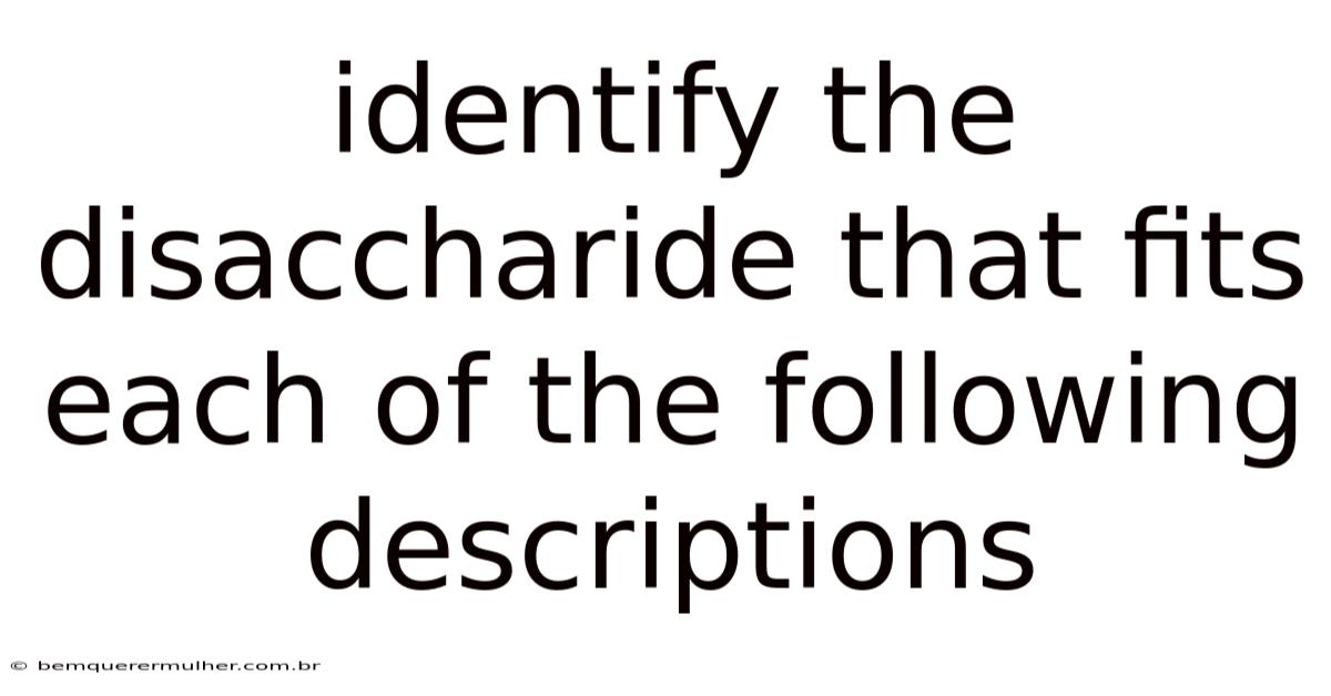 Identify The Disaccharide That Fits Each Of The Following Descriptions