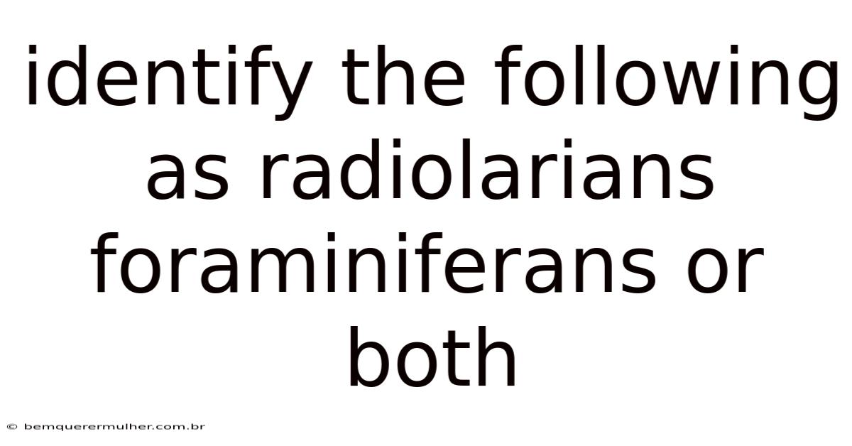 Identify The Following As Radiolarians Foraminiferans Or Both