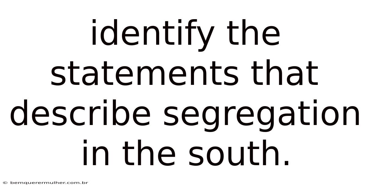 The systematic separation of people based on race, particularly the enforced racial division in the Southern United States during the late 19th and early-to-mid 20th centuries, is a defining and deeply troubling aspect of American history. This practice, known as segregation, permeated nearly every facet of public and private life, creating a stark and often brutal hierarchy. Identifying the statements that accurately describe this era requires understanding the pervasive nature of these policies and their devastating impact.