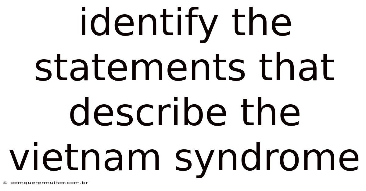 The term "Vietnam Syndrome" describes a complex set of psychological, political, and cultural attitudes that emerged in the United States following the Vietnam War. It is not a formal medical diagnosis but a powerful sociopolitical concept capturing a deep-seated reluctance to engage in prolonged, large-scale military interventions abroad, especially when vital national interests are ambiguous and public support is fragile. Also, this syndrome manifested as a profound crisis of confidence in American power, military morality, and governmental credibility, shaping foreign policy debates for decades. Identifying the statements that describe the Vietnam Syndrome requires examining its core components: the trauma of a lost war, the political backlash against military adventurism, and the enduring cultural scar left on the national psyche.
