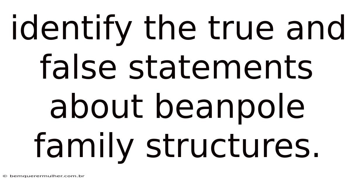 - False: Beanpole families are a temporary phase. Demographic projections suggest these structures will persist as long as fertility rates remain low and life expectancy rises.
