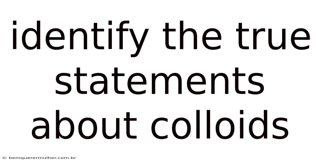 Understanding the true nature of colloids is essential for grasping many scientific concepts, from everyday phenomena to advanced technological applications. This article aims to explore the key aspects of colloids, highlighting the true statements that define this complex subject. Still, colloids are fascinating mixtures that play a significant role in various industries and natural processes. By breaking down the properties, behaviors, and applications of colloids, we can appreciate their importance in science and daily life Easy to understand, harder to ignore..