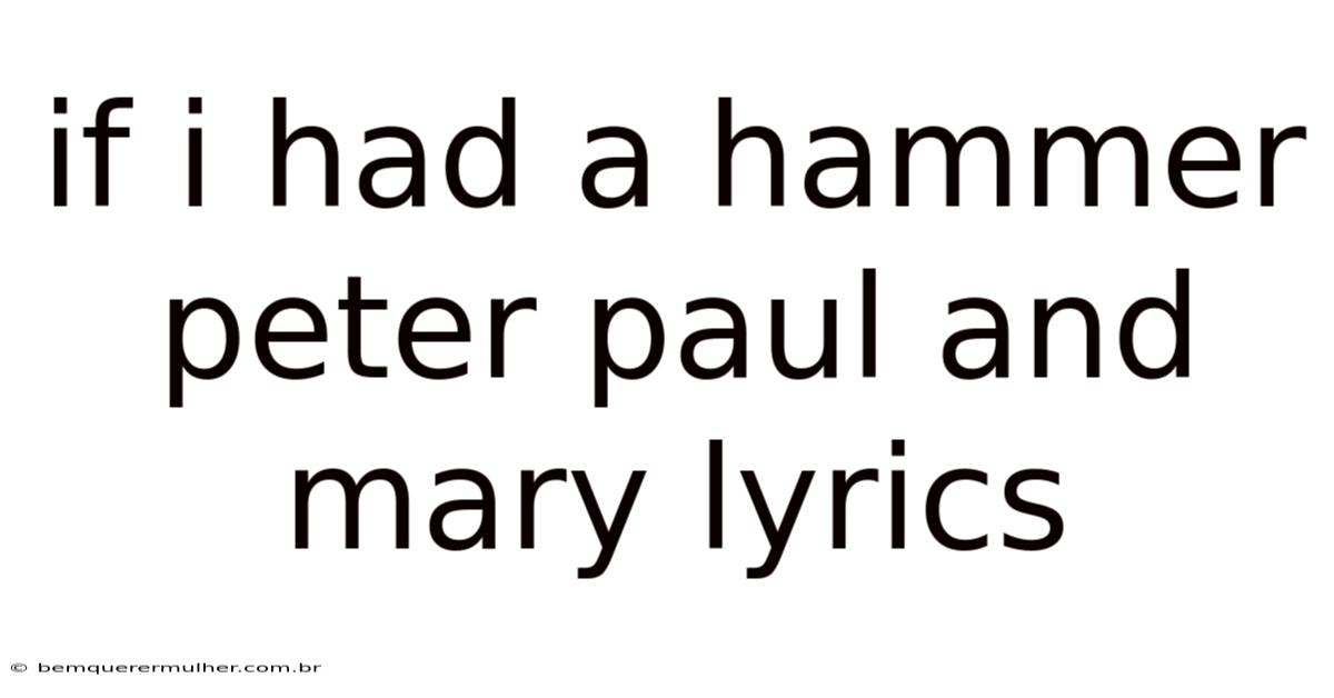 The opening chords of If I Had a Hammer instantly transport listeners to a world where hope, activism, and music intertwine. Written by Pete Seeger and Lee Hays and popularized by the folk trio Peter, Paul & Mary, the song became an anthem for civil rights, anti‑war movements, and social justice. In this article we’ll explore the historical context, lyrical meaning, musical structure, and the enduring relevance of the hymn‑like tune that continues to inspire new generations Which is the point..