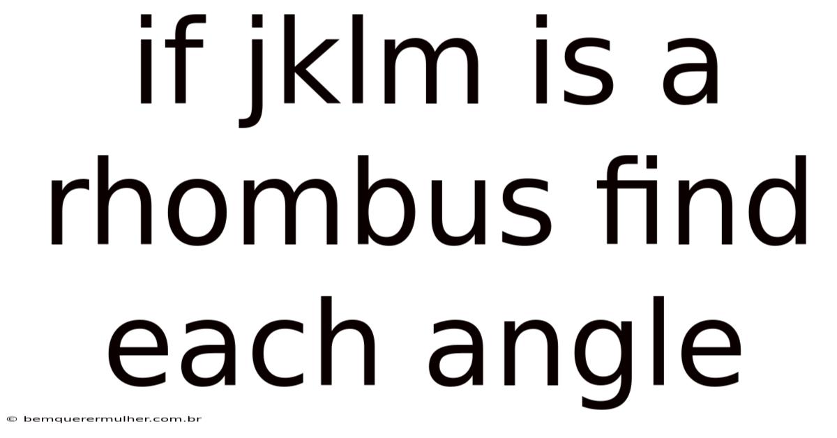 If JKLM is a rhombus, finding each angle requires understanding the unique geometric properties of this shape. Because of that, a rhombus is a type of parallelogram where all four sides are of equal length, and opposite sides are parallel. Even so, these properties directly influence the relationships between its angles. Let’s break down the process of determining each angle in rhombus JKLM using its defining characteristics.