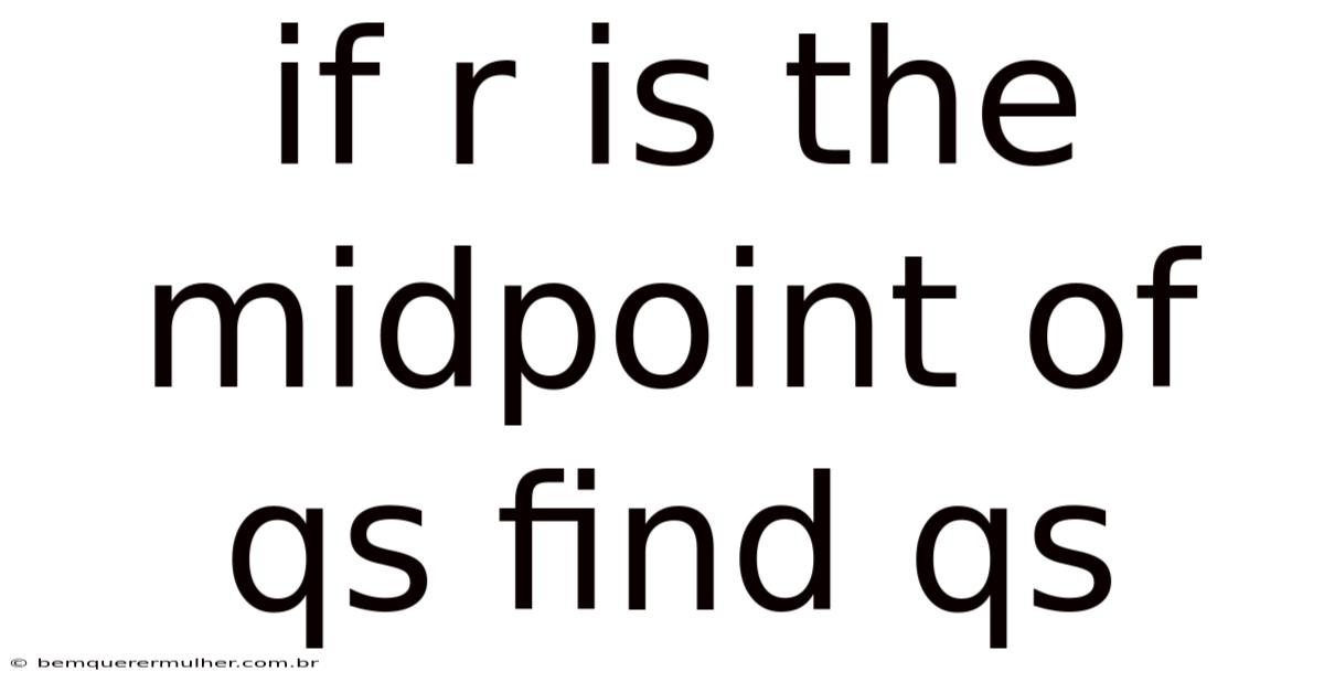 When dealing with geometric problems involving midpoints, one of the most common questions is: If R is the midpoint of QS, find QS. Even so, in this article, we will explore the principles behind midpoints, walk through the steps to solve such problems, and provide a scientific explanation to deepen your understanding. Also, whether you’re a student tackling geometry homework or someone trying to apply this knowledge in real-world scenarios, mastering this concept is essential. This question may seem simple at first glance, but it requires a clear understanding of the concept of a midpoint and how it relates to the length of a line segment. By the end, you’ll not only know how to find QS but also appreciate the underlying logic that makes this calculation possible.